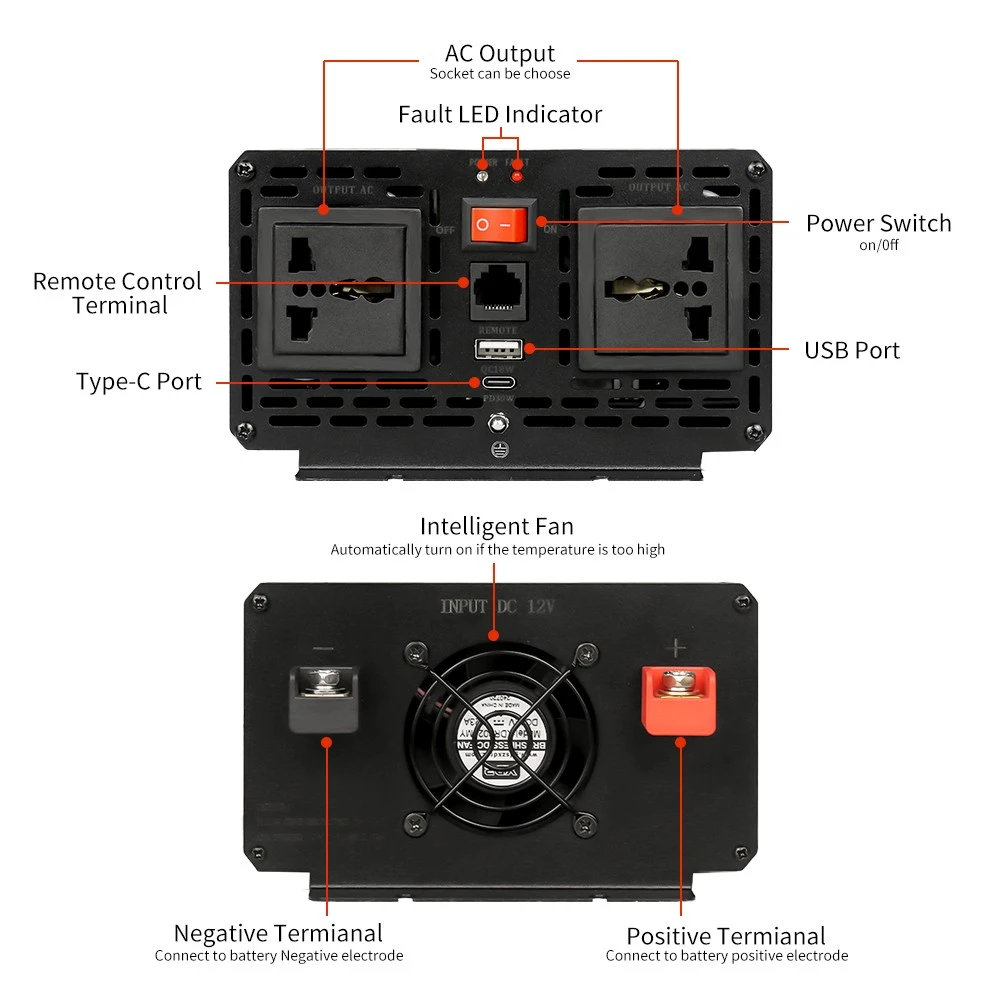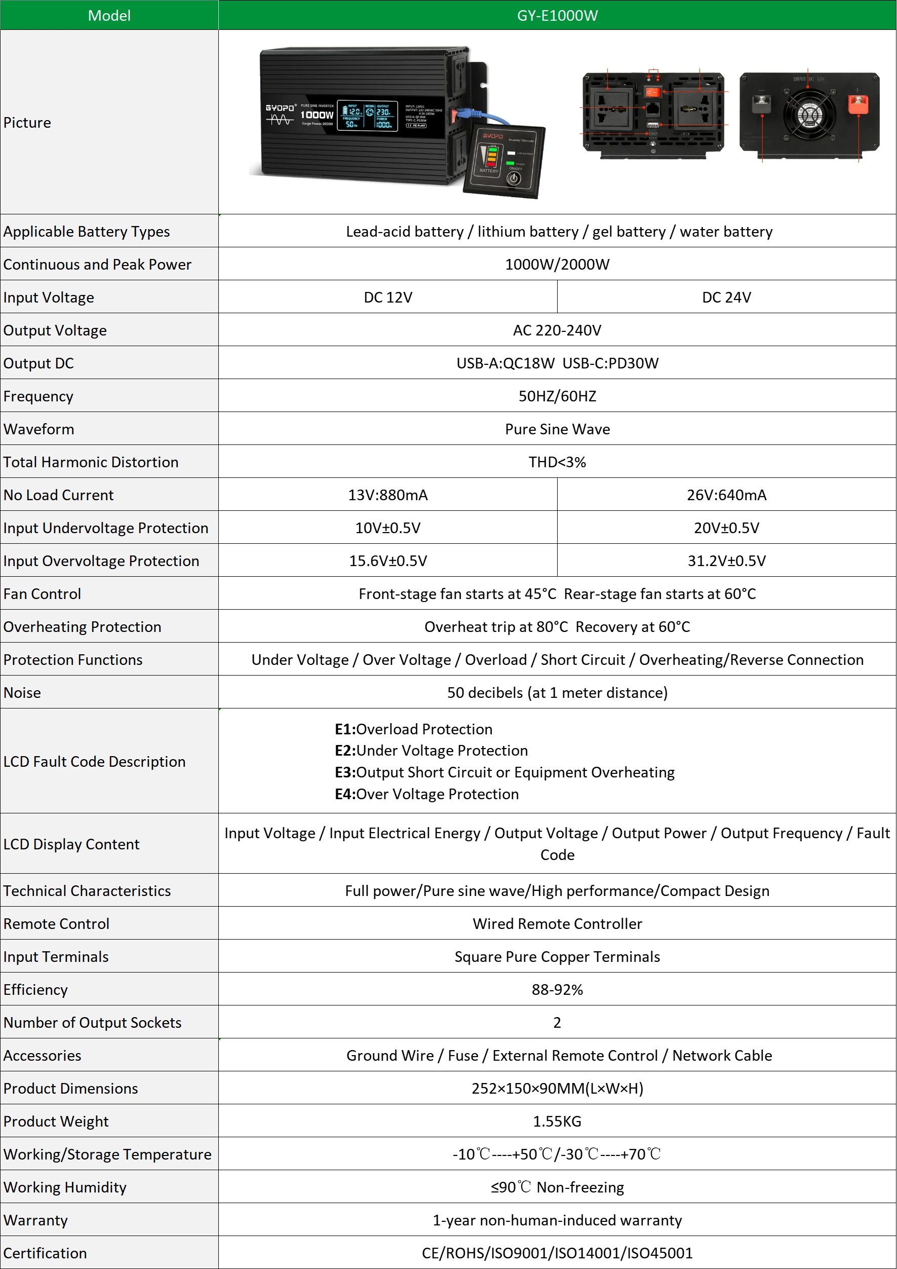 GY-E1000 Pure Sine Wave Power Inverter – Reliable & Compact Energy Solution