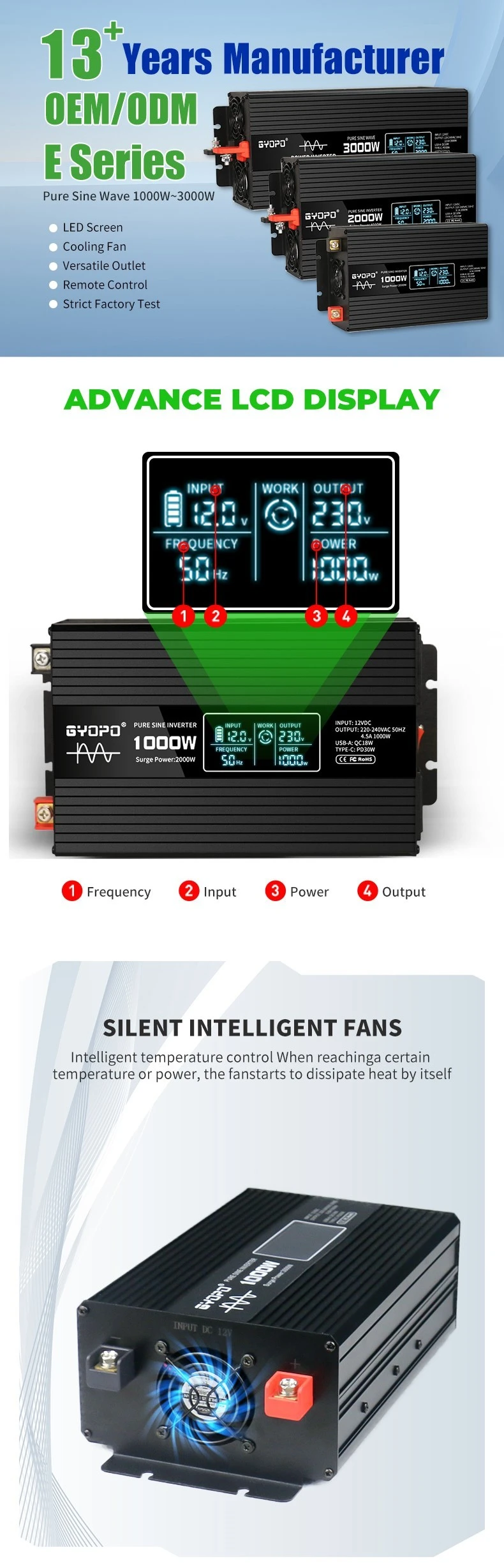 Introducing the GY-E1000 Pure Sine Wave Power Inverter from Wuhan Guanyou New Energy Technology Co., Ltd. – a high-performance, compact, and reliable power conversion solution designed for both everyday and demanding applications.