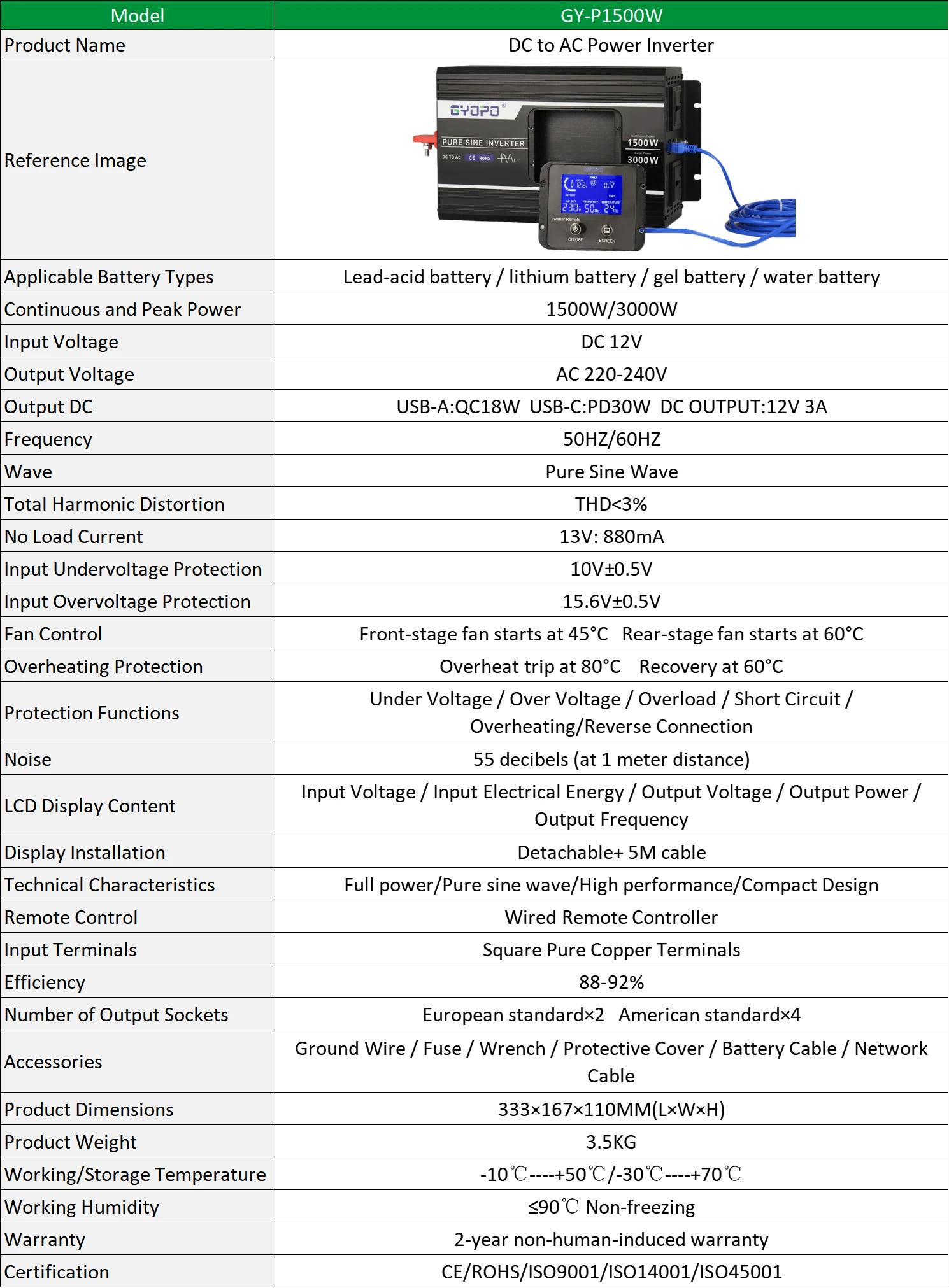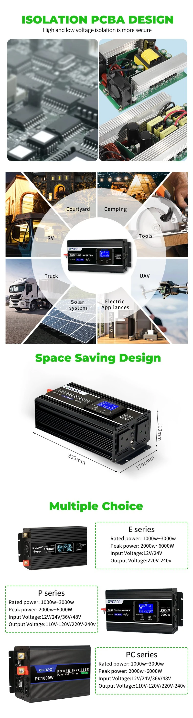 Each model delivers real, continuous power (1000W–3000W) with a pure sine wave output (THD < 3%), ensuring safe and stable performance for sensitive electronics.
