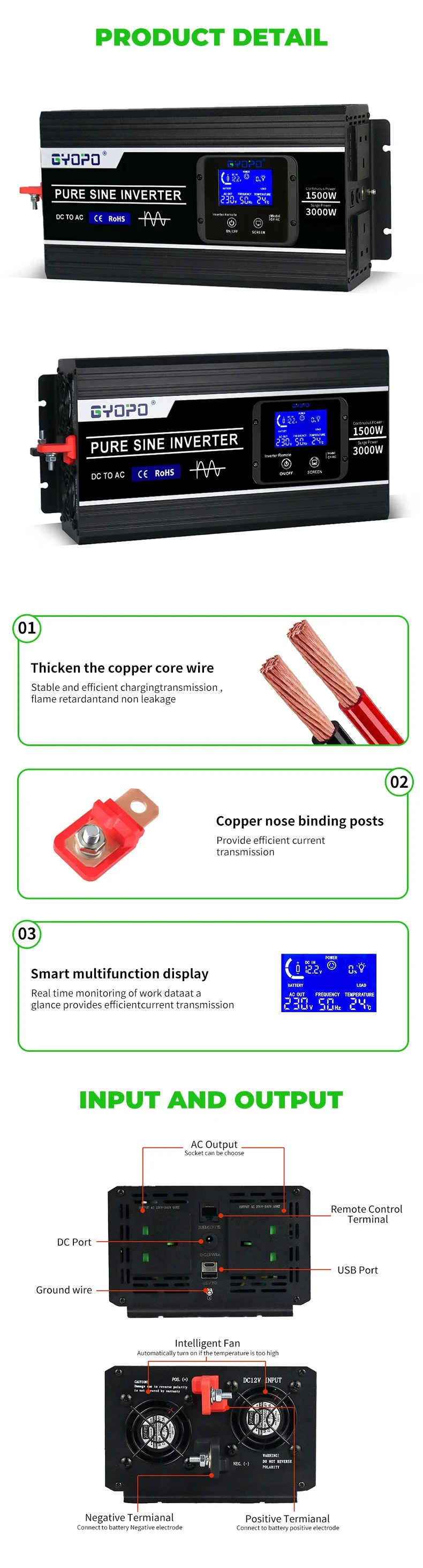 Equipped with an external detachable LCD screen and a 5-meter extension cable, the inverter can be installed in tight or