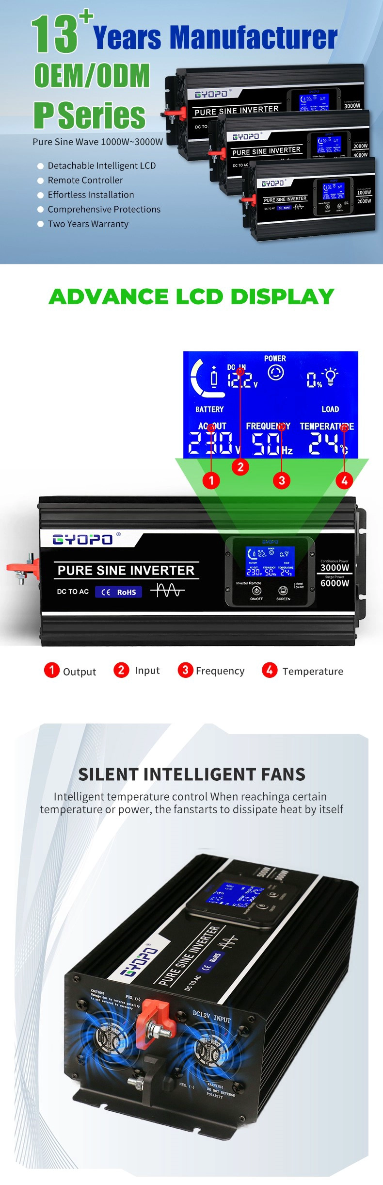 3000W Power Inverter with Detachable LCD