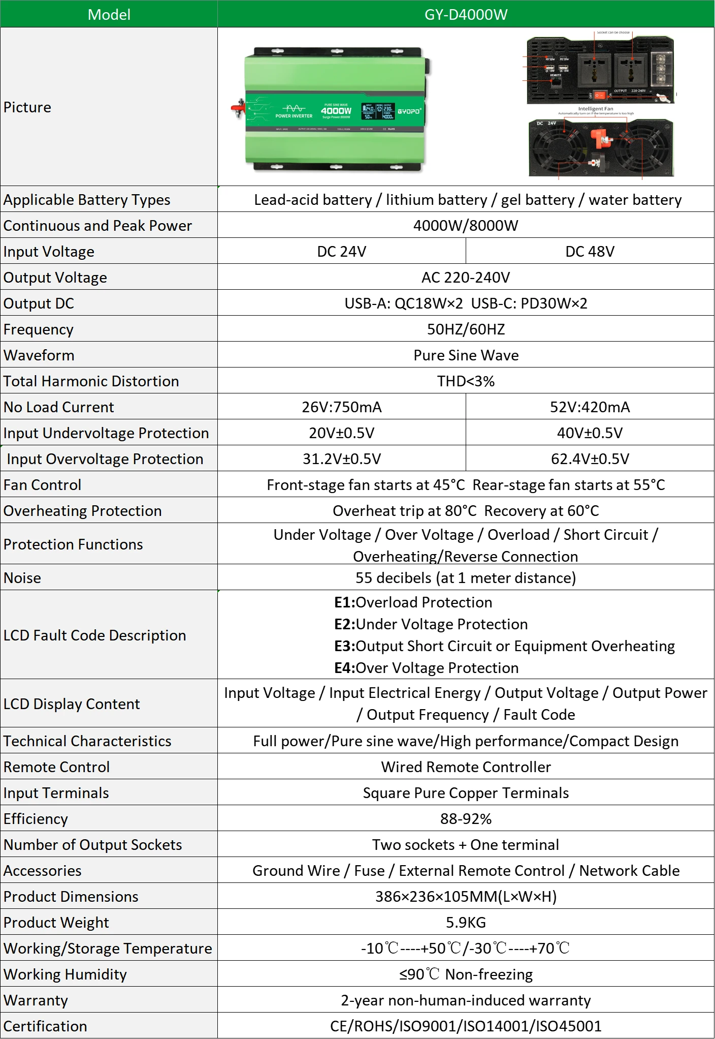 GY-D4000 Pure Sine Wave Power Inverter – Reliable & Compact Energy Solution
