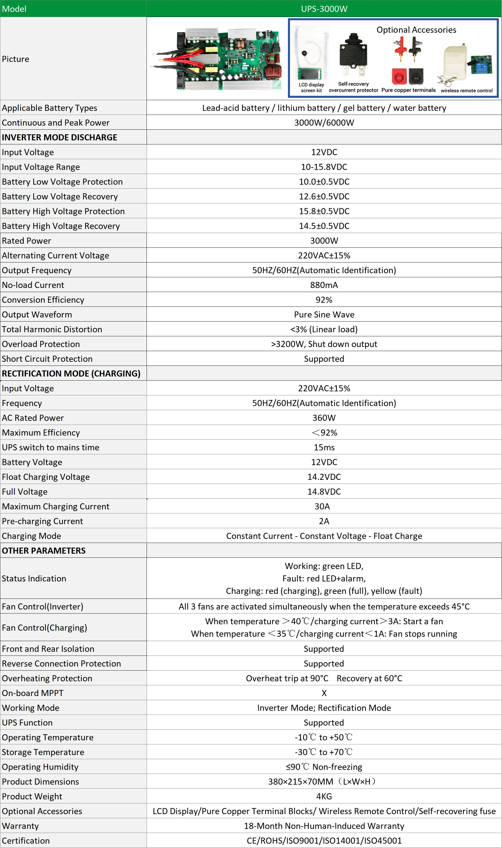 - Rated Power: 3000W