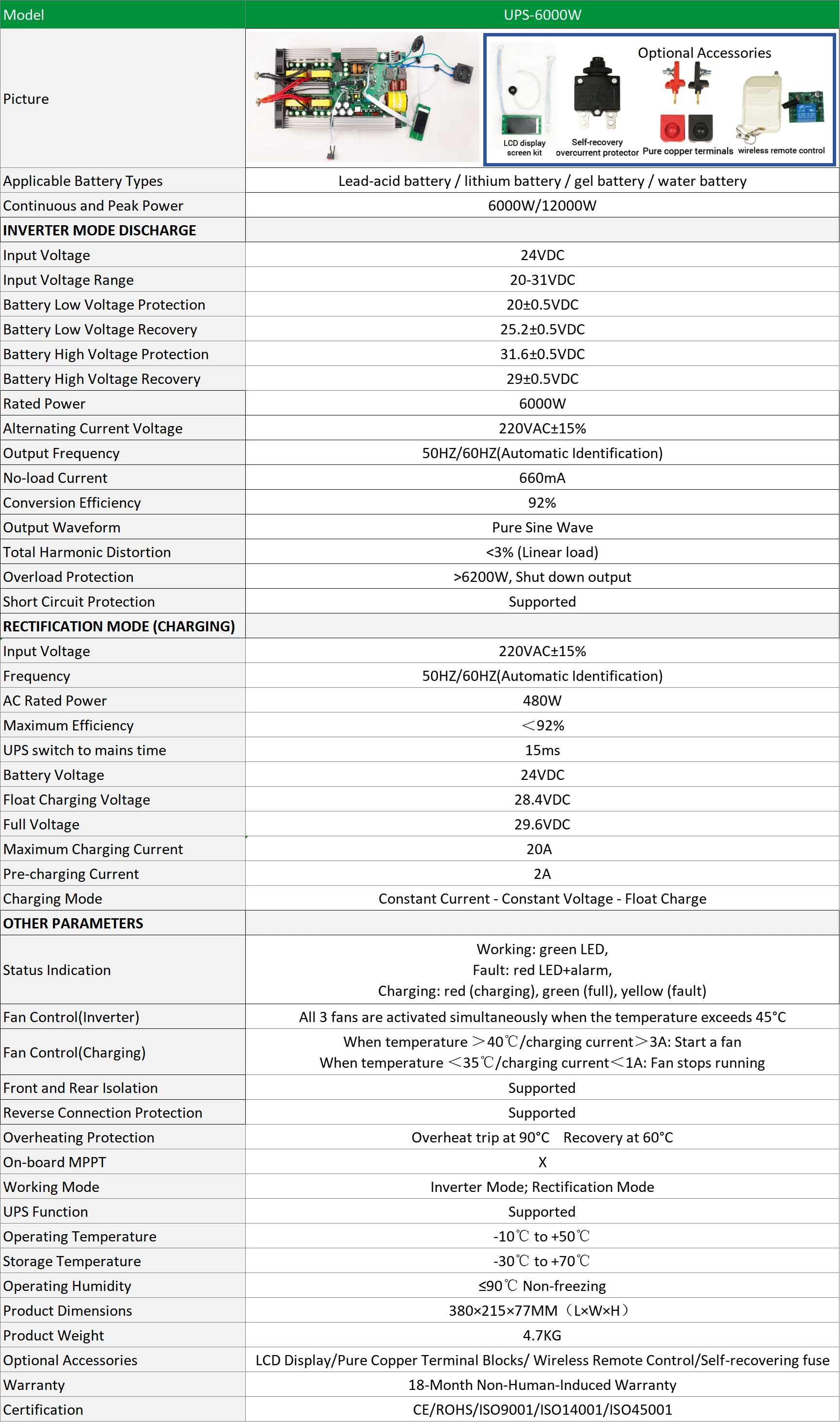 * DC to AC: Delivers 6000W continuous (12000W peak) pure sine wave AC output.